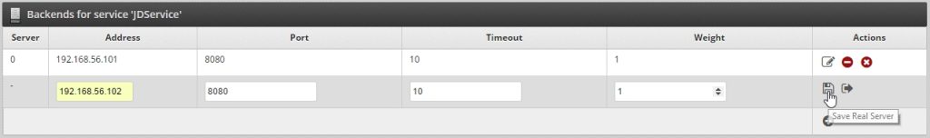 In this example, we have two backends, we select IP, port (8080), timeout and weight and click on