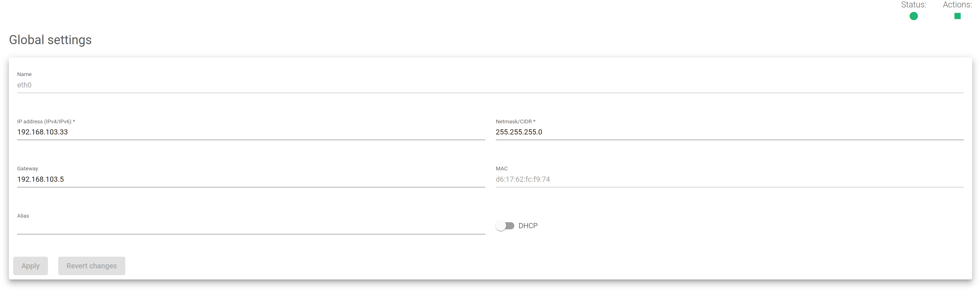 IPv4 and IPv6 stacks are supported, taking into account that the Netmask and Gateway must be configured in the same stack as the IP. Once all the required changes are done, press the Apply button to apply the new changes.